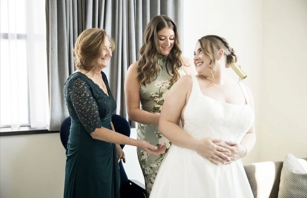 With this service, you get on-location touch-ups so you can keep that fresh glow and radiance for photos and after the ceremony, to last you well into the night. The mother of the bride is also included! Brides always recommend this specialty service, especially on those hot days.